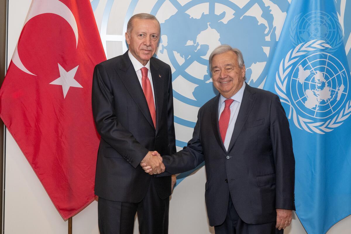 Secretary-General António Guterres (right) meets with Recep Tayyip Erdoğan, President of the Republic of Türkiye.