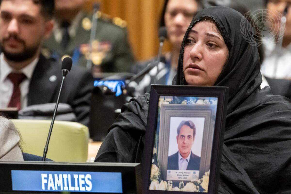 A view of a participant holding a photo of Zafar Abbas during the annual Memorial Service to honour United Nations Personnel who lost their Lives in the Line of Duty from 1 January to 31 December 2023.