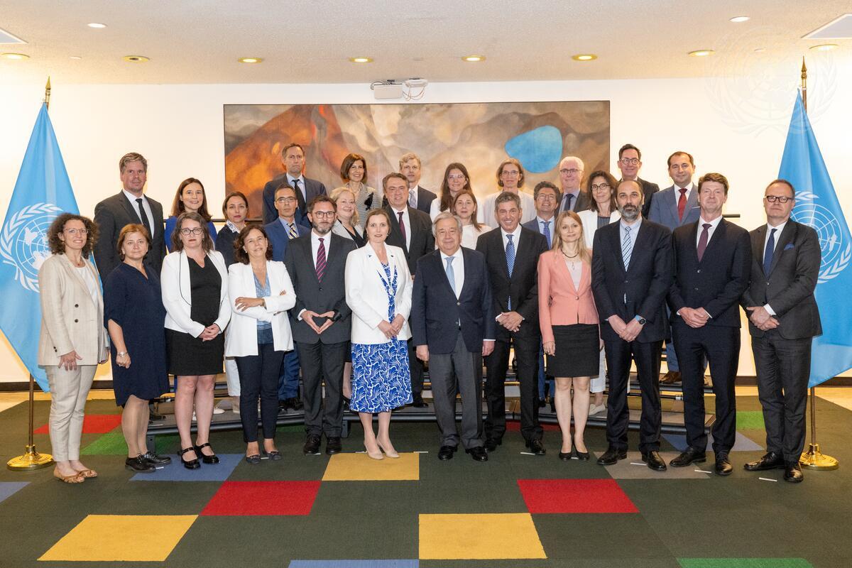 Secretary-General António Guterres (centre right) meets with Permanent Representatives of the European Union Political and Security Committee.