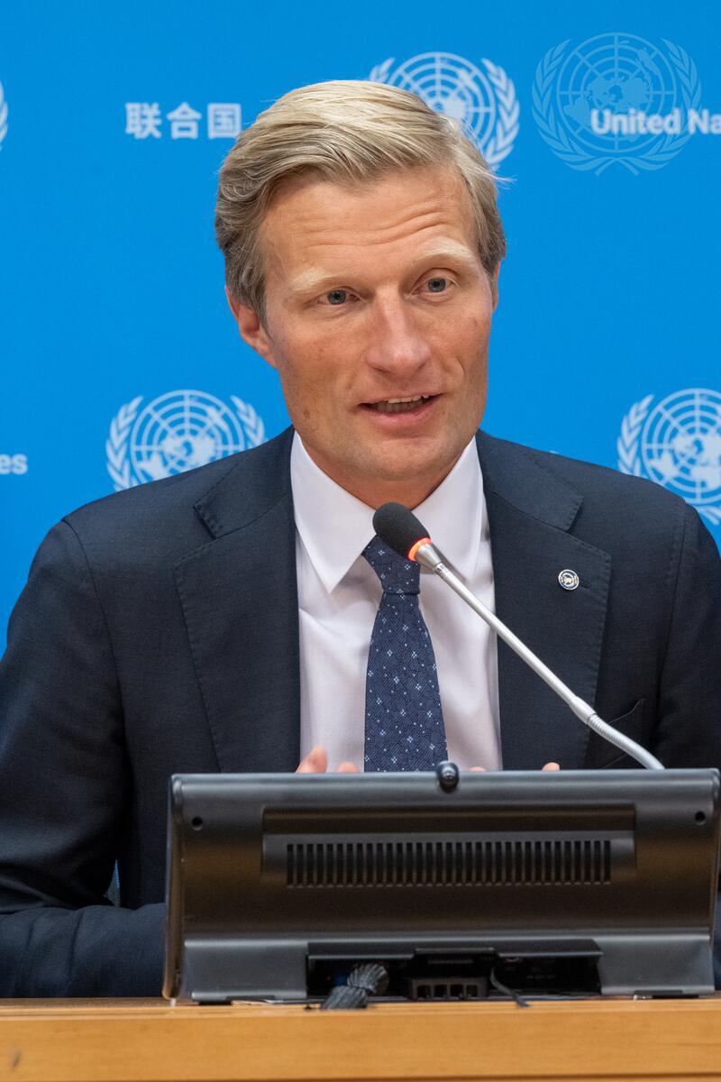 Carl Skau, Deputy Executive Director of the United Nations World Food Programme (WFP), briefs reporters on his recent visit to Haiti.