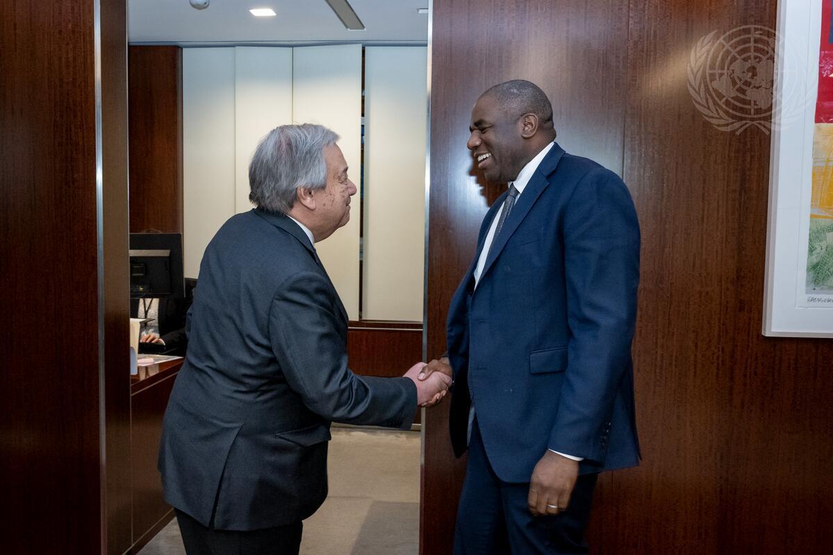 UN Secretary-General António Guterres (left) meets with David Lammy, Shadow Secretary of State for Foreign, Commonwealth and Development Affairs of The United Kingdom of Great Britain and Northern Ireland.