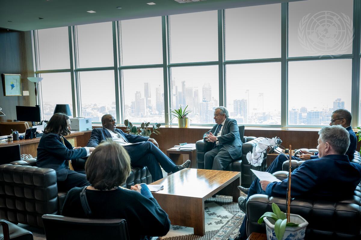 UN Secretary-General António Guterres (center, seated) meets with David Lammy (second from left, seated), Shadow Secretary of State for Foreign, Commonwealth and Development Affairs of The United Kingdom of Great Britain and Northern Ireland.