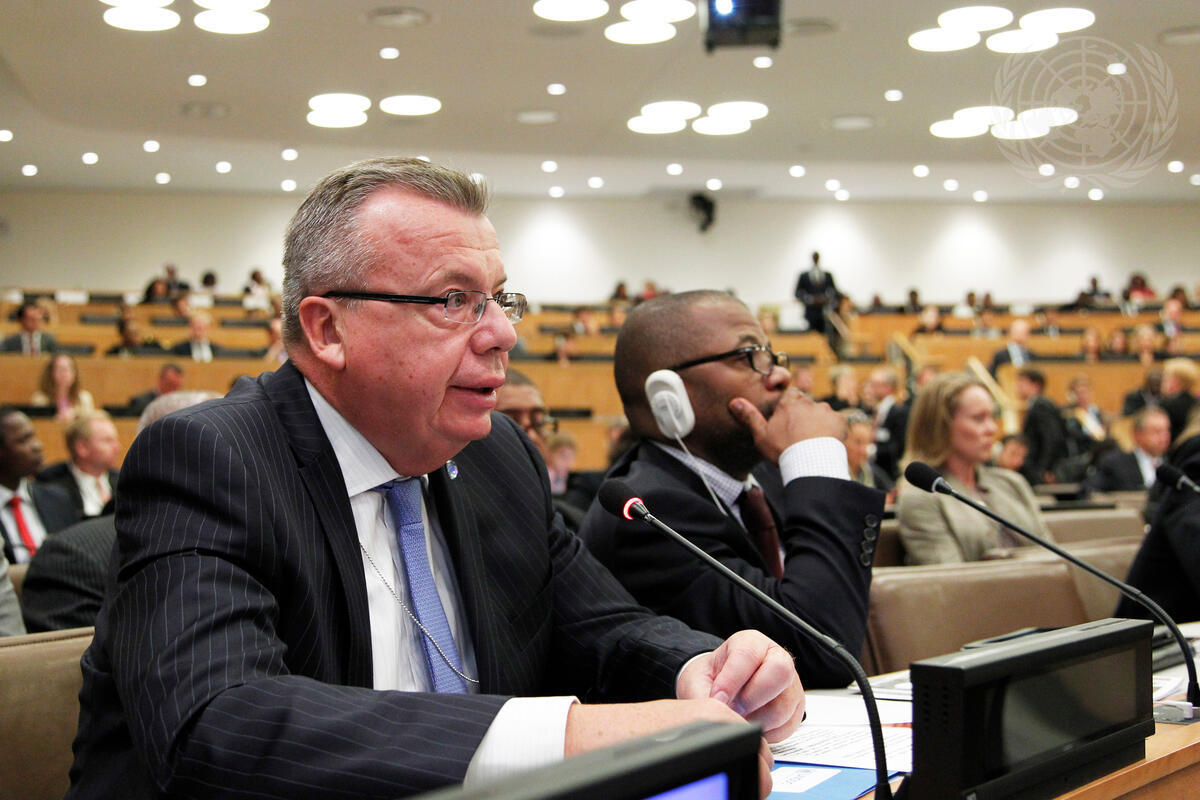 Yury Fedotov (left), Director-General of the UN Office at Vienna (UNOV), speaking at the High-Level Panel on Poaching and Illicit Wildlife Trafficking during the opening weeks of the sixty-eighth session of the General Assembly. The event was co-organized by the Permanent Missions of Gabon and Germany.