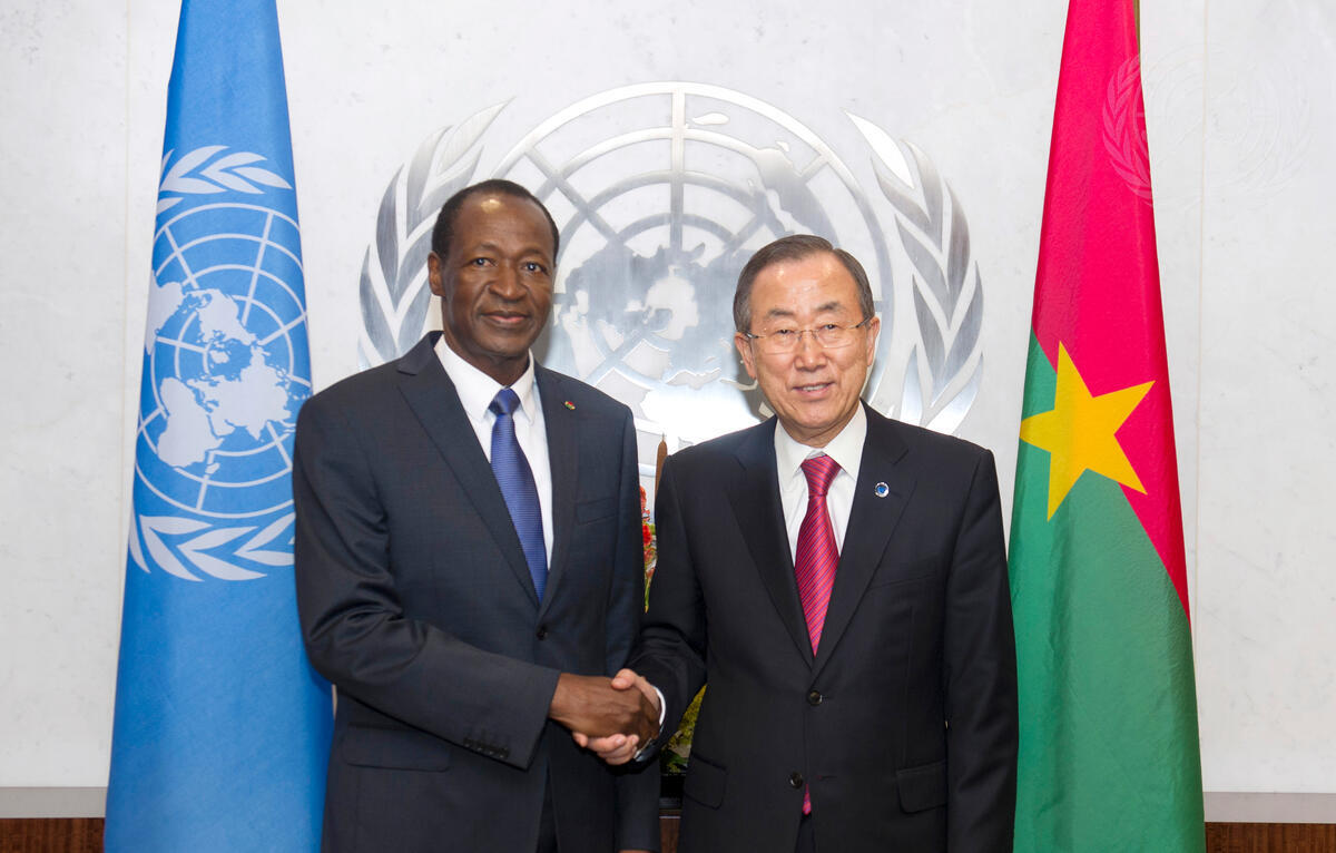 Secretary-General Ban Ki-moon (right) meets with Blaise Compaoré, President of Burkina Faso.