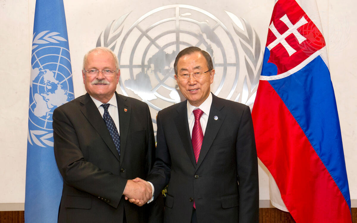 Secretary-General Ban Ki-moon (right) meets with Ivan Gašparovic, President of the Slovak Republic.