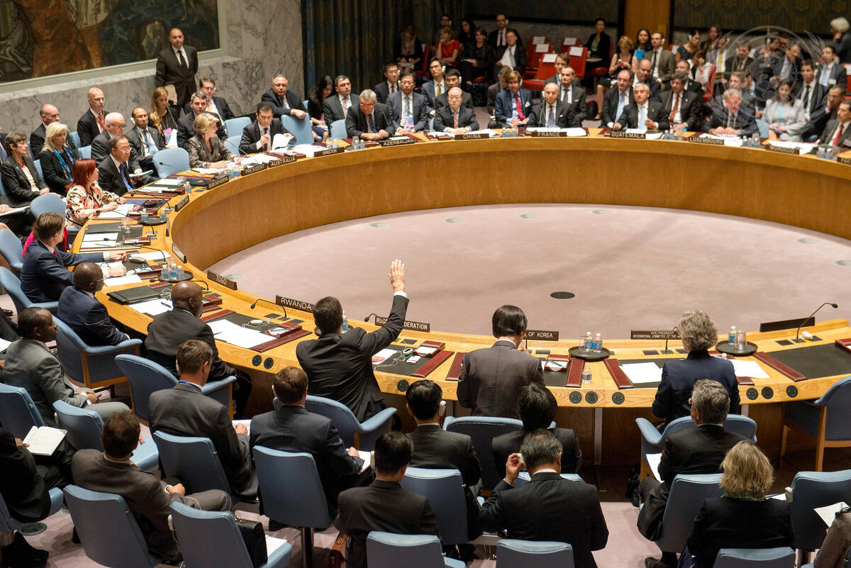 A wide view of the Security Council as the representative of the Russian Federation registers his country’s abstention on resolution 2117 (2013). The resolution, which was adopted by fourteen votes, expresses the Council’s grave concern at the “illicit transfer, destabilizing accumulation and misuse of small arms and light weapons in many regions of the world”.