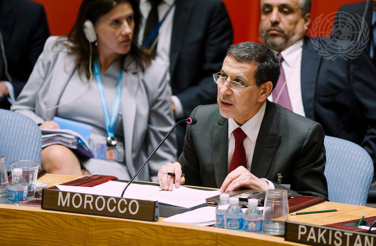 Saad-Eddine El Othmani (right), Minister for Foreign Affairs and Cooperation of the Kingdom of Morocco, addresses the Council.