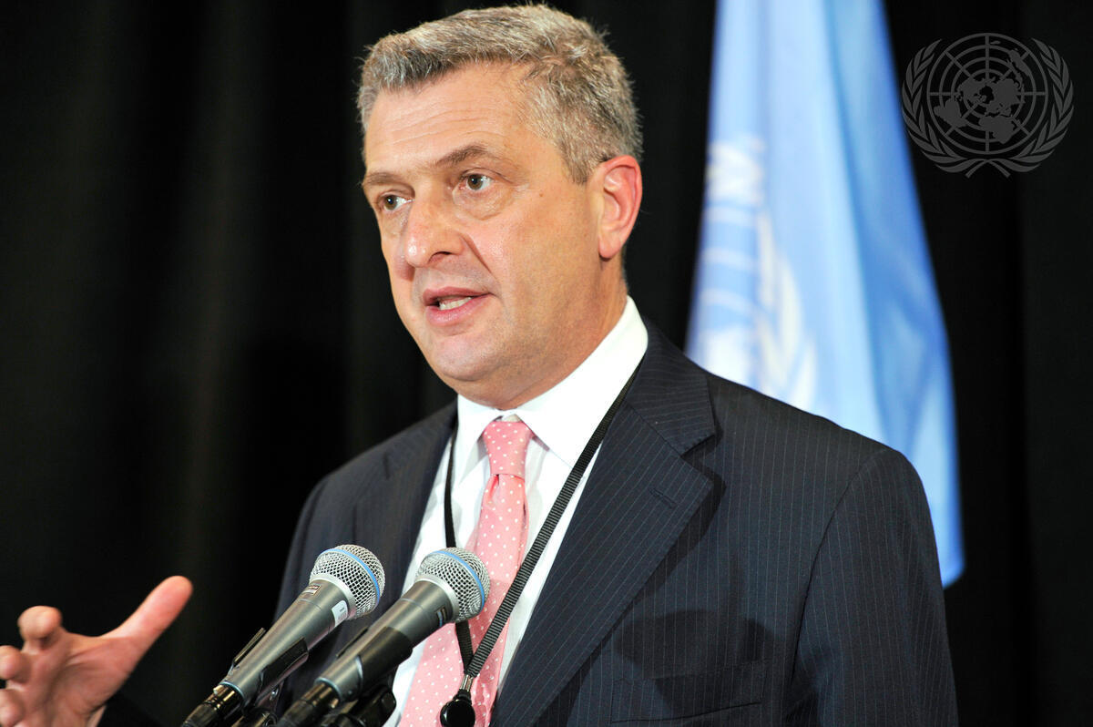 Filippo Grandi, Commissioner-General of the UN Relief and Works Agency for Palestine Refugees in the Near East (UNRWA), speaks to correspondents.