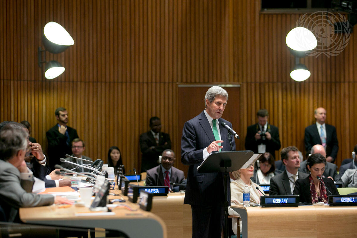 John F. Kerry (standing), United States Secretary of State, addresses the opening of the special event, “Towards Achieving the Millennium Development Goals (MDGs)”, organized by the President of the General Assembly.