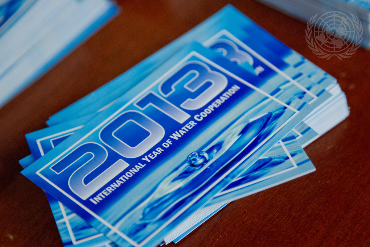 The General Assembly convened a high-level interactive dialogue on water cooperation to mark the International Year of Water Cooperation (2013). A view of publicity material on the Year at the opening of the high-level dialogue.