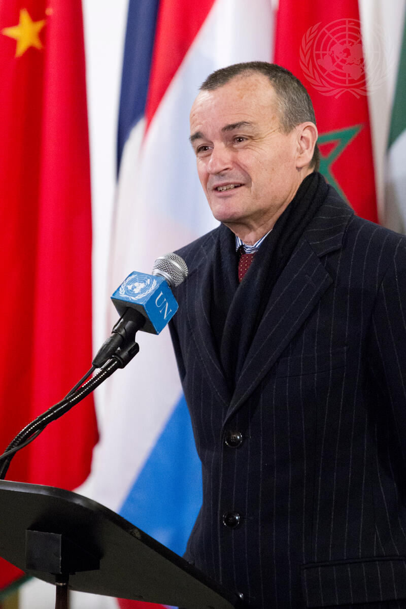 Gerard Araud, Permanent Representative of France to the UN, addresses the press following Security Council consultations on Mali. Members of the Social Council discussed the establishment of a peacekeeping operation in the Republic of Mali.
