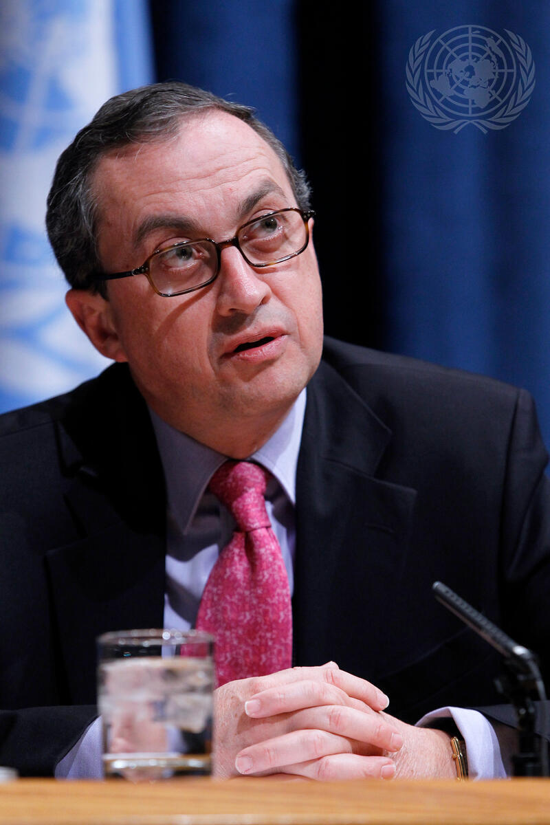 Juan Manuel Gómez-Robledo, Mexico's Deputy Foreign Minister for Multilateral Affairs and Human Rights, briefs journalists on the Final UN Conference on the Arms Trade Treaty (ATT). Other speakers included Anna MacDonald, Head of Arms Control, Oxfam; Allison Pytlak, Campaign Manager of the Control Arms Coalition; and Baffour Amoa, President of the West African Action Network on Small Arms (WAANSA).