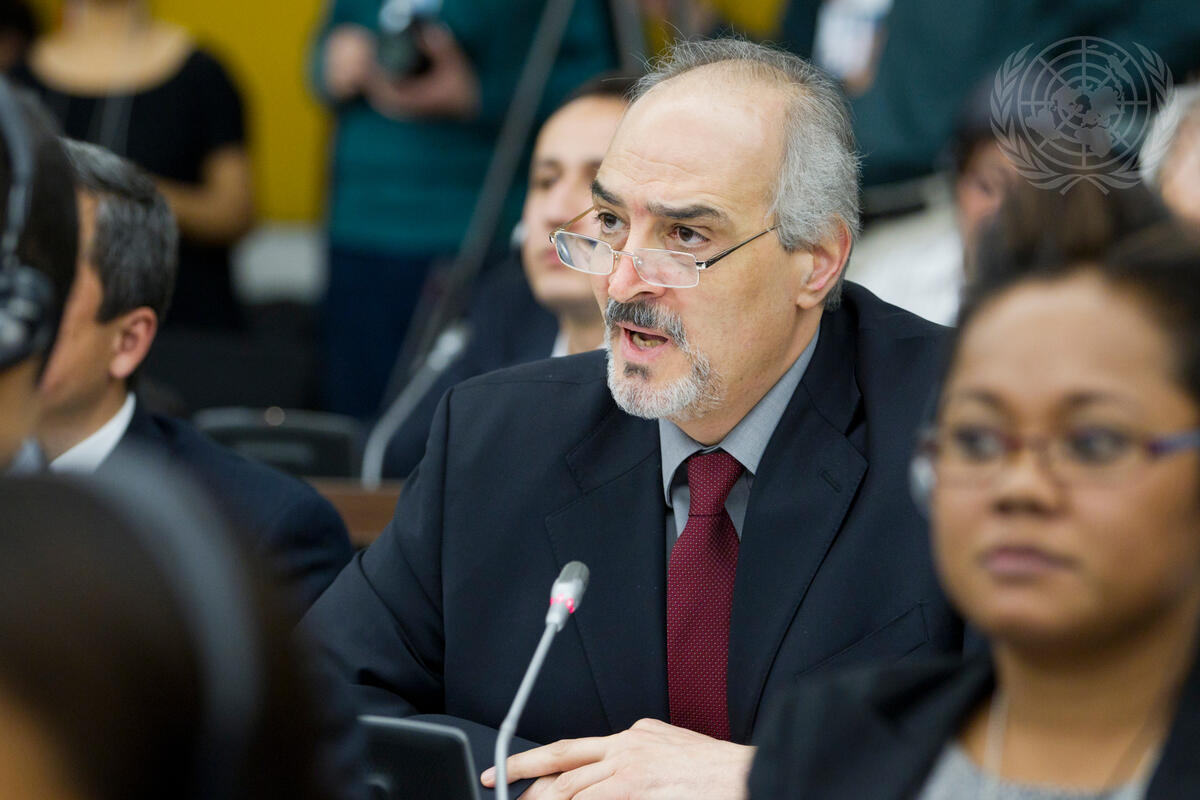 Bashar Ja’afari, Permanent Representative of the Syrian Arab Republic to the UN, addresses the Final UN Conference on the Arms Trade Treaty (ATT), expressing his country’s opposition to the draft Treaty. Adoption of the text by consensus would have required the support of all 193 Members of the UN.