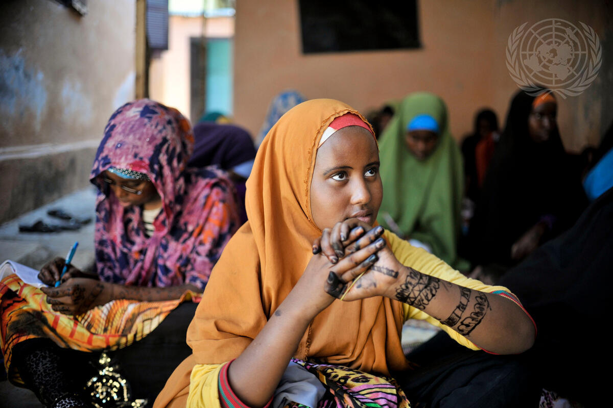 A girl at the Mother and Child Health Center in Mogadishu, Somalia, during a visit by Zainab Bangura, the Secretary-General’s Special Representative (SRSG) on Sexual Violence in Conflict. The SRSG also visited Internally Displaced Persons (IDP) camps and women’s shelters as part of her visit to Somalia.