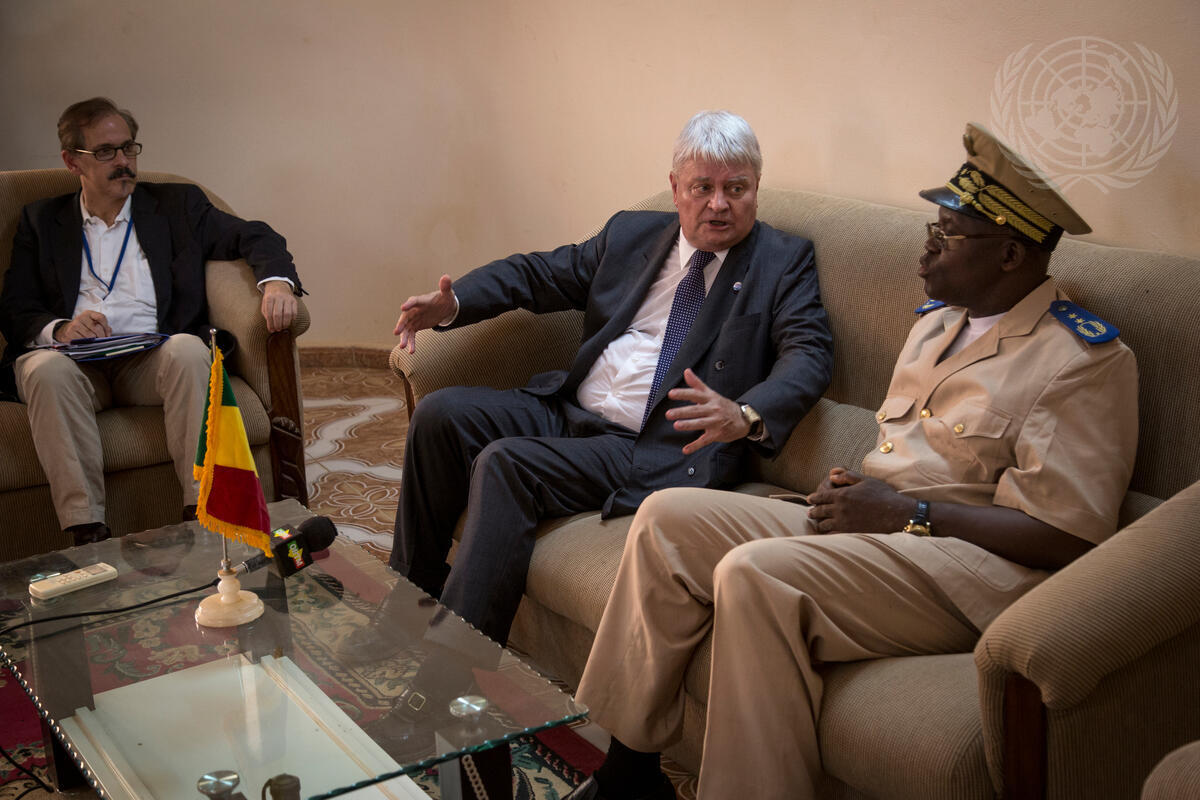 Under-Secretary-General for Peacekeeping Operations Hervé Ladsous (centre) pays a visit to the Governor and local authorities during his visit to Gao, Mali.