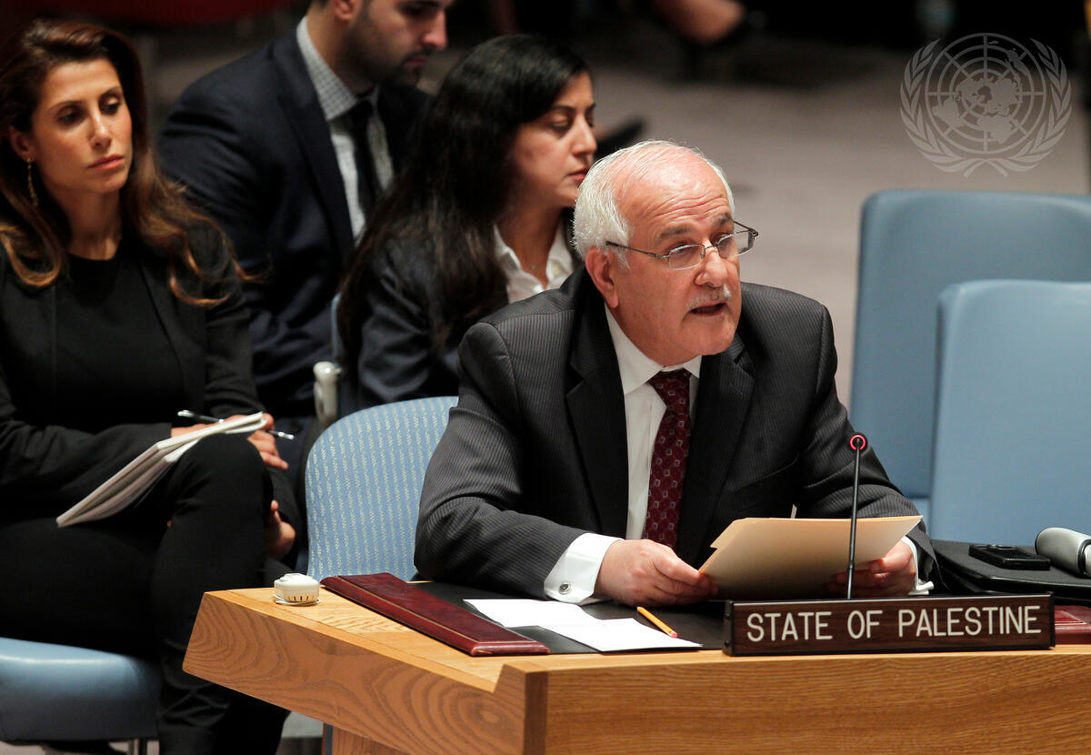 Riyad H. Mansour, Permanent Observer of the State of Palestine to the UN, addresses the Security Council meeting on the situation in the Middle East, including the Palestinian question. Yesterday, Secretary-General Ban Ki-moon stressed that there can be no military solution to the conflict in Gaza which flared up over a week ago.
