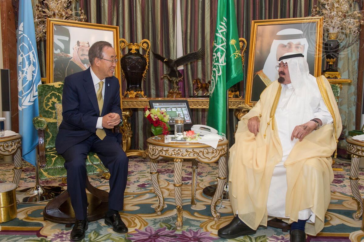 Secretary-General Ban Ki-moon (left) meets with King Abdullah Bin Abdulaziz Al-Saud of Saudi Arabia.