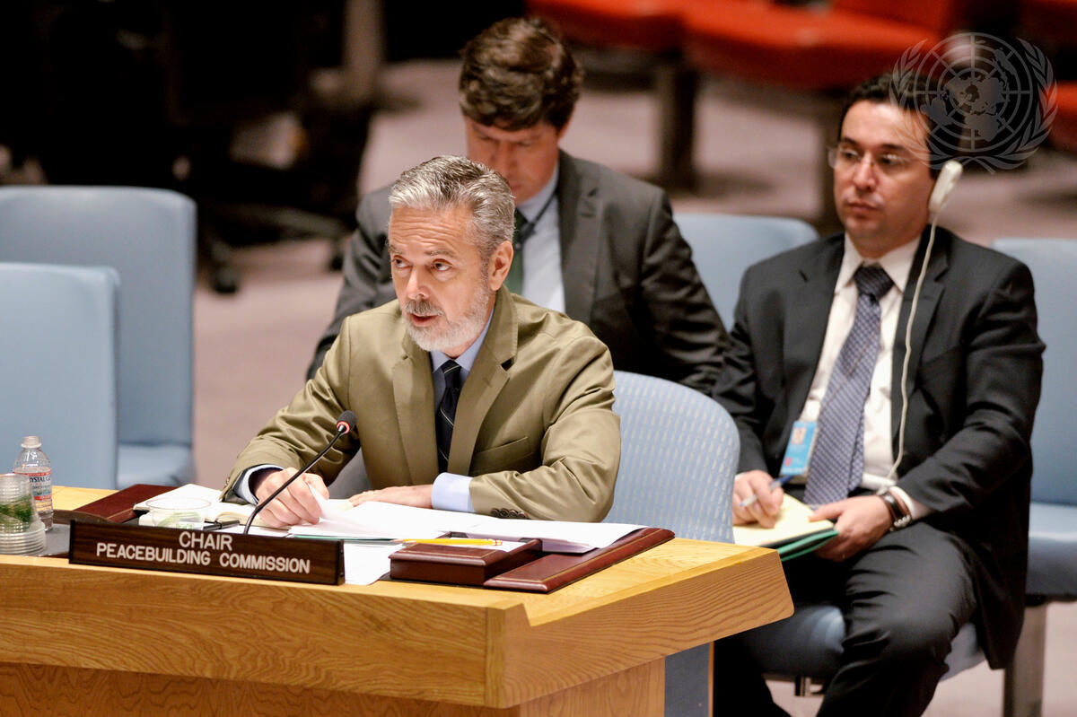 Antonio de Aguiar Patriota, Permanent Representative of Brazil to the UN and Chair of the PBC, briefs the Security Council.