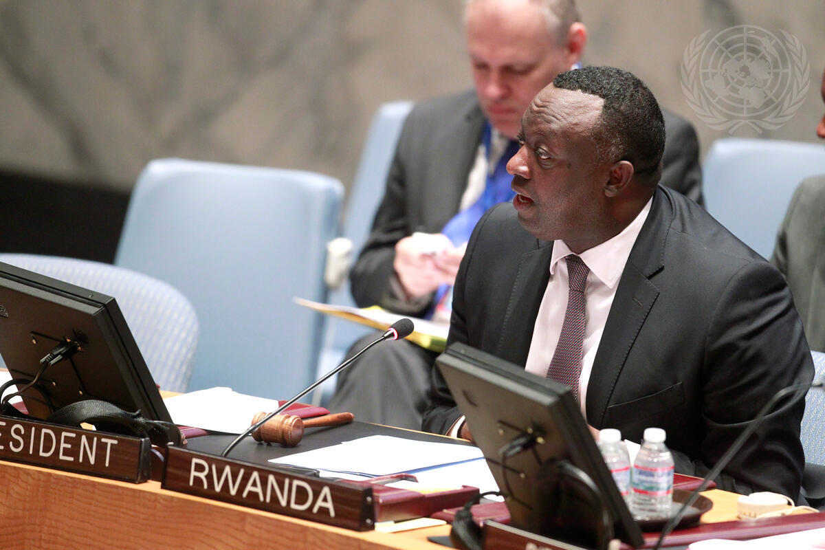 Eugène-Richard Gasana, Permanent Representative of the Republic of Rwanda to the UN and President of the Security Council for July, chairs the Council’s meeting on the situation in Iraq.