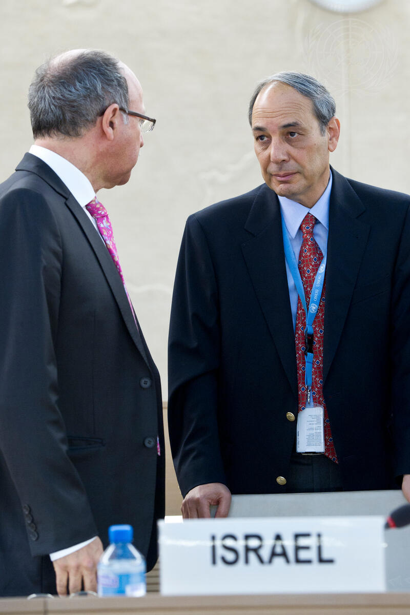 Eviator Manor (right), Permanent Representative of Israel to the UN Office at Geneva (UNOG), at the Human Rights Council meeting.