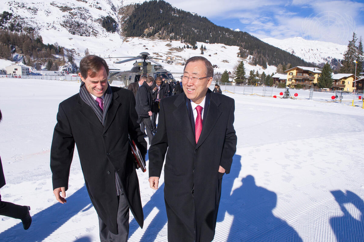 Secretary-General Ban Ki-moon arrives in Davos to attend this year's World Economic Forum.