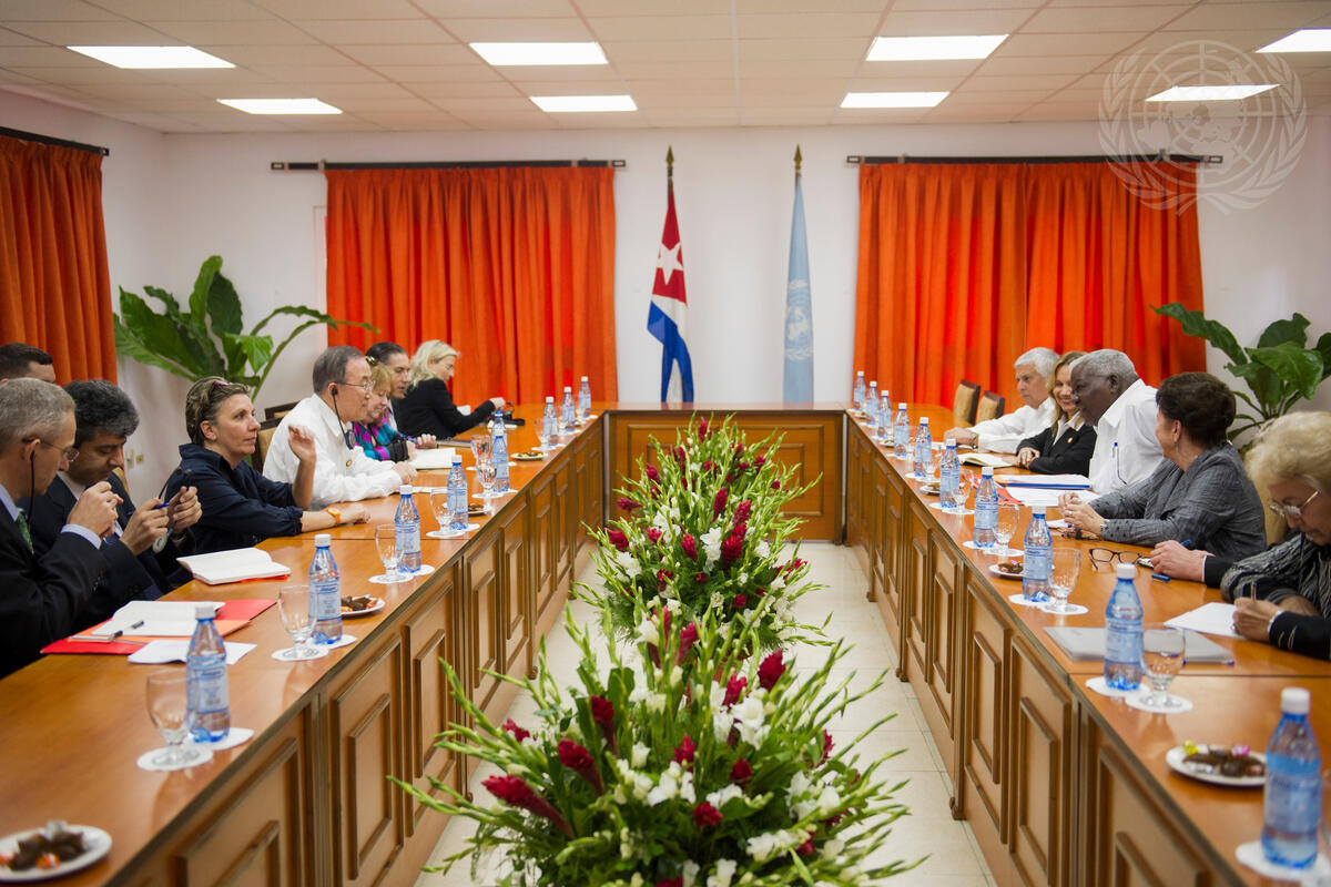 Secretary-General Ban Ki-moon (centre left) meets with Esteban Lazo Hernández (centre right), President of the National Assembly of the People’s Power of Cuba.