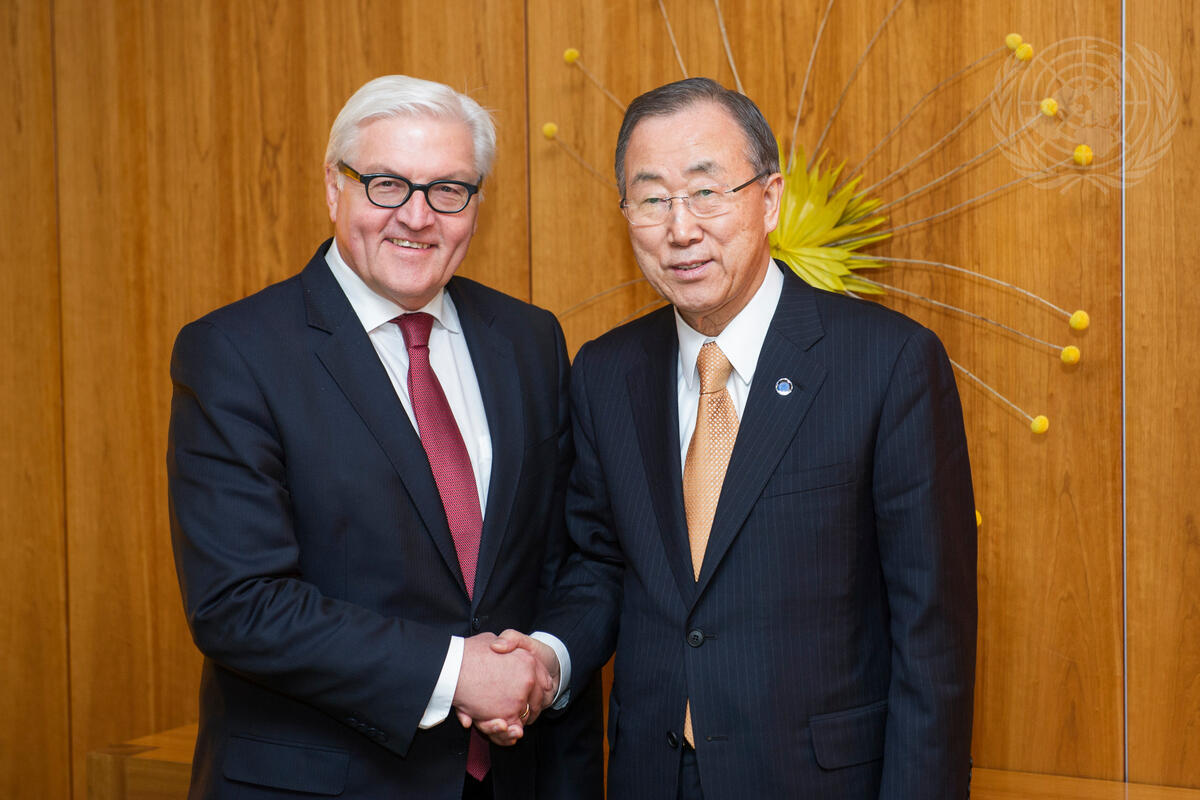 Secretary-General Ban Ki-moon (right) meets with Frank-Walter Steinmeier, Minister for Foreign Affairs of Germany.