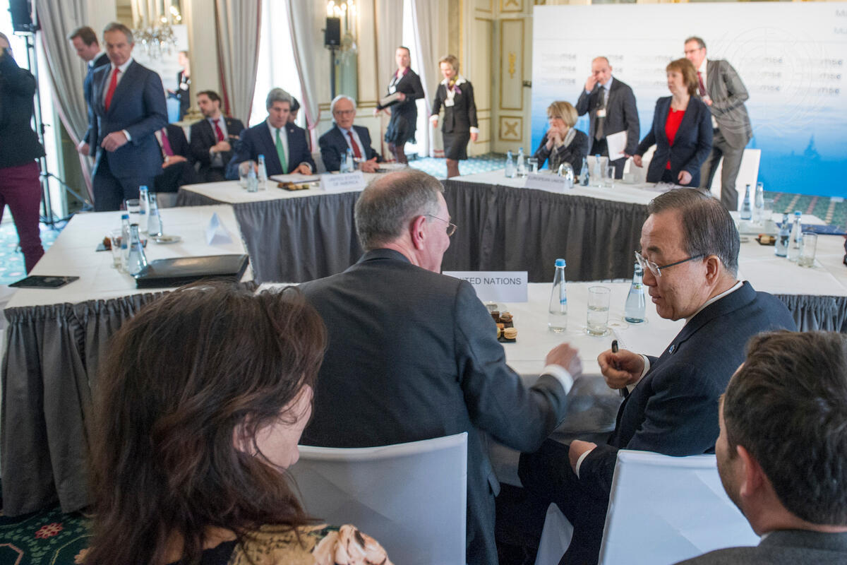 Secretary-General Ban Ki-moon (right, back to camera) with Robert H. Serry, UN Special Coordinator for the Middle East Peace Process, at the meeting of the representatives of Middle East Quartet (namely, the UN, the United States, the Russian Federation and the European Union).