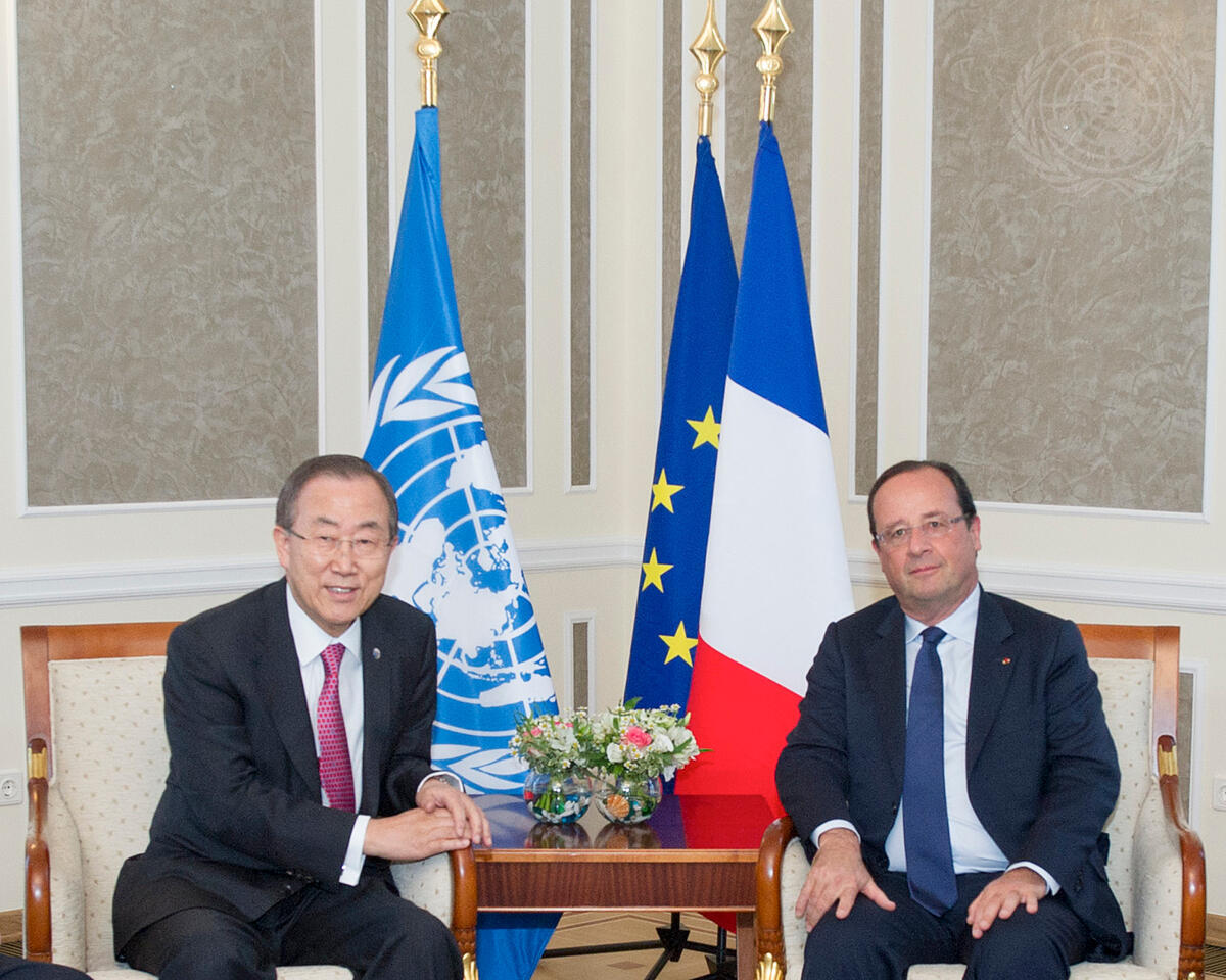 The Secretary-General (left) and President Hollande during the meeting.