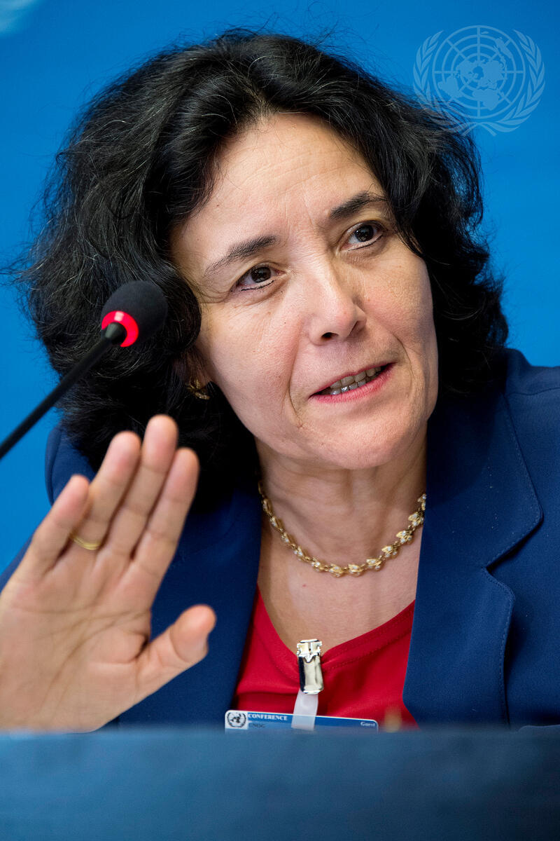 Leila Zerrougui, Special Representative of the Secretary-General for Children and Armed Conflict, addresses a press conference after presenting her report to the 24th regular session of the Human Rights Council.