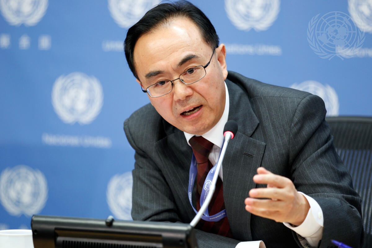 Pingfan Hong (left), Acting Director of the Development Policy and Analysis Division, Department of Economic and Social Affairs, addresses a press conference launching the 2013 report of the the Millennium Development Goals (MDG) Gap Task Force entitled, “The Global Partnership for Development: The Challenge We Face”.