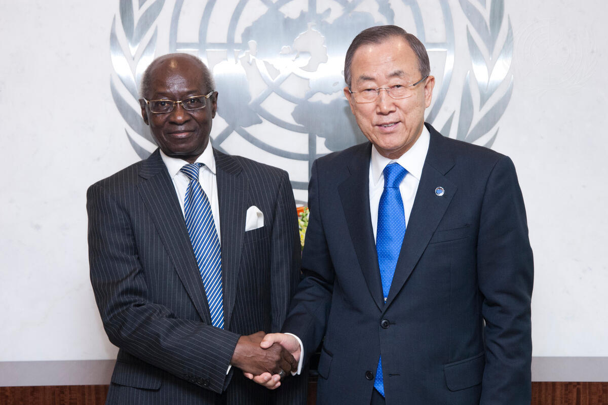 Shekou M. Touray (left), Permanent Representative of the Republic of Sierra Leone to the United Nations, pays a farewell call on Secretary-General Ban Ki-moon.