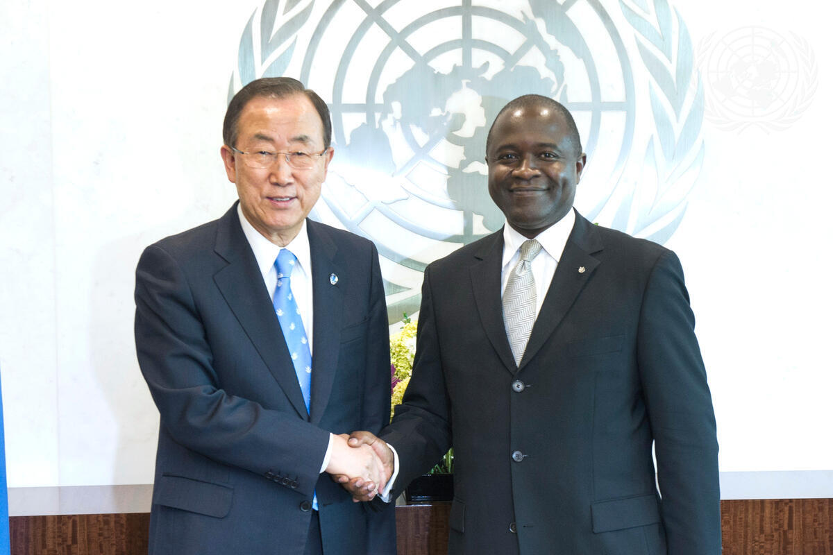 Secretary-General Ban Ki-moon (left) meets with Vandi Chidi Minah, new Permanent Representative of the Republic of Sierra Leone to the United Nations.