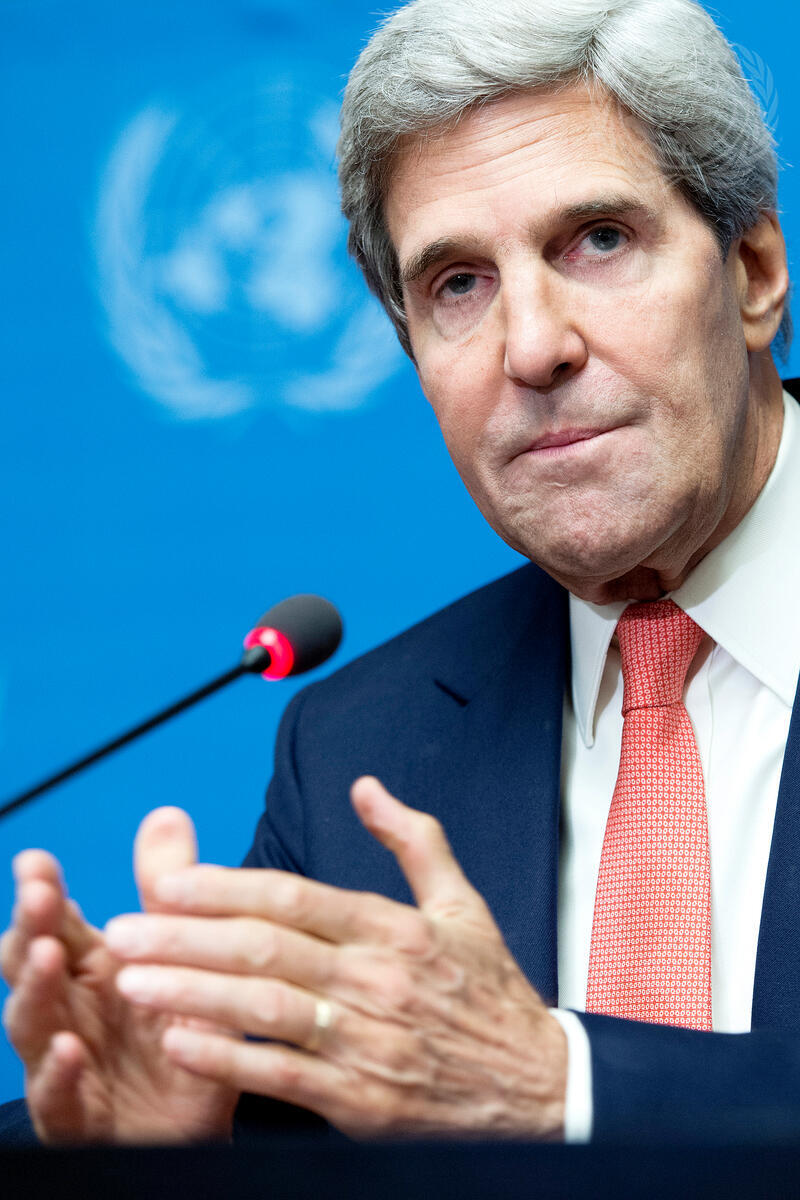 John Kerry, Secretary of State of the United States of America during the press conference after a meeting at Palais des Nations in Geneva.