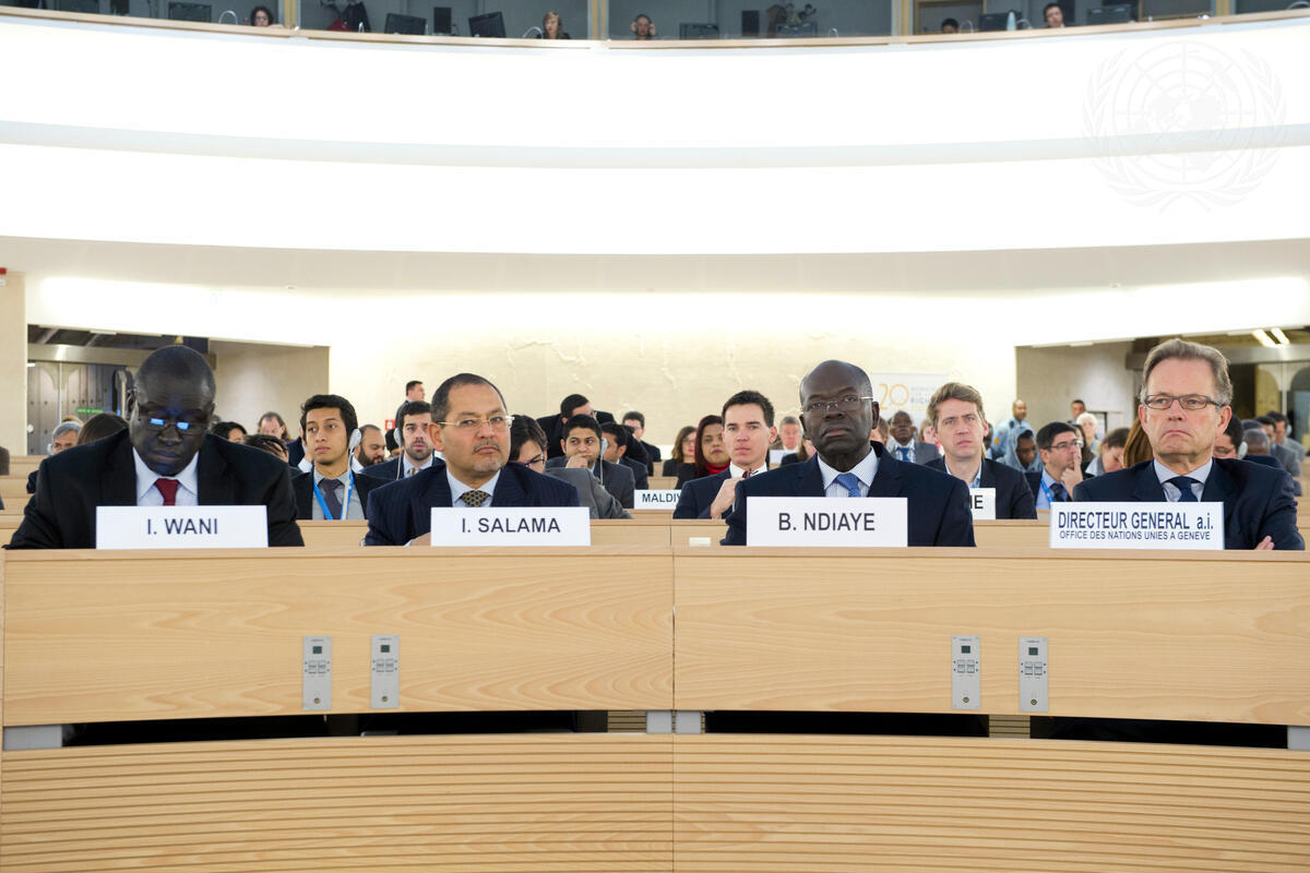 Participants, including Michael Møller (right), Acting Director-General of the United Nations Office at Geneva (UNOG), during a Human Rights Day event held at the Palais des Nations. The event included a panel discussion marking the 20th anniversary of the adoption of the Vienna Declaration and Programme of Action, which led to the creation of the Office of the High Commissioner for Human Rights.