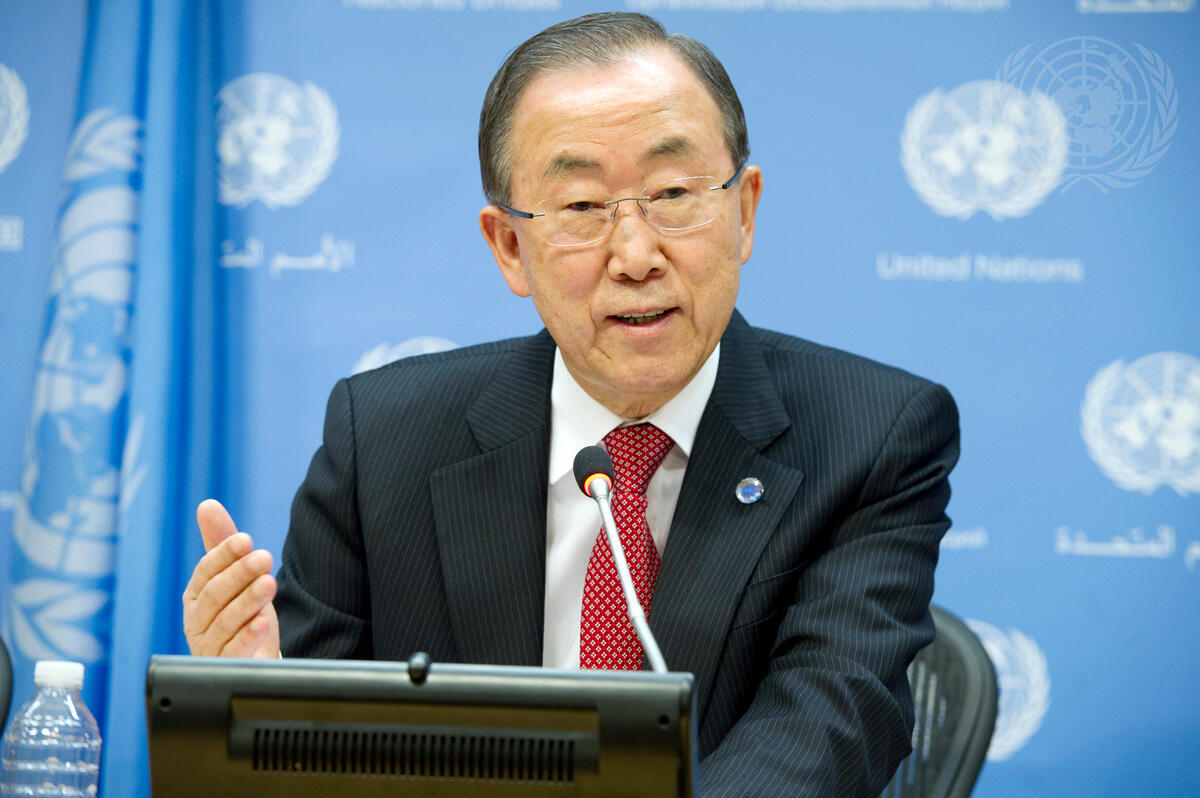 Secretary-General Ban Ki-moon addresses journalists at his annual end-of-year press conference.