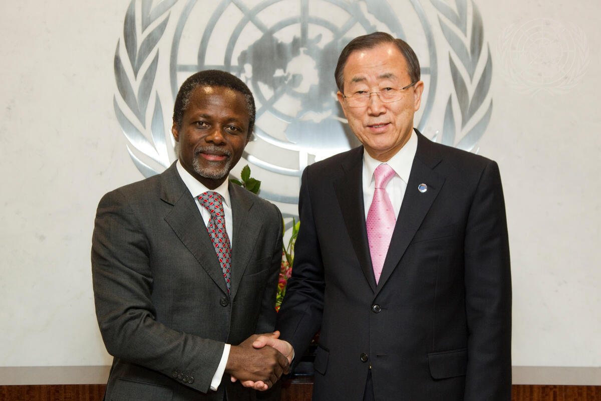 Secretary-General Ban Ki-moon (right) meets with Parfait Onanga-Anyanga, his Special Representative for Burundi and Head of the UN Office in Burundi (BNUB).