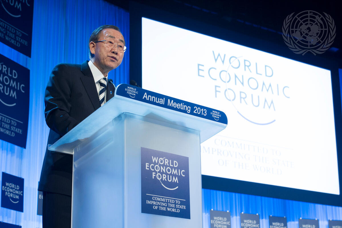 Secretary-General Ban Ki-moon addresses the World Economic Forum at its annual meeting in Davos, Switzerland.