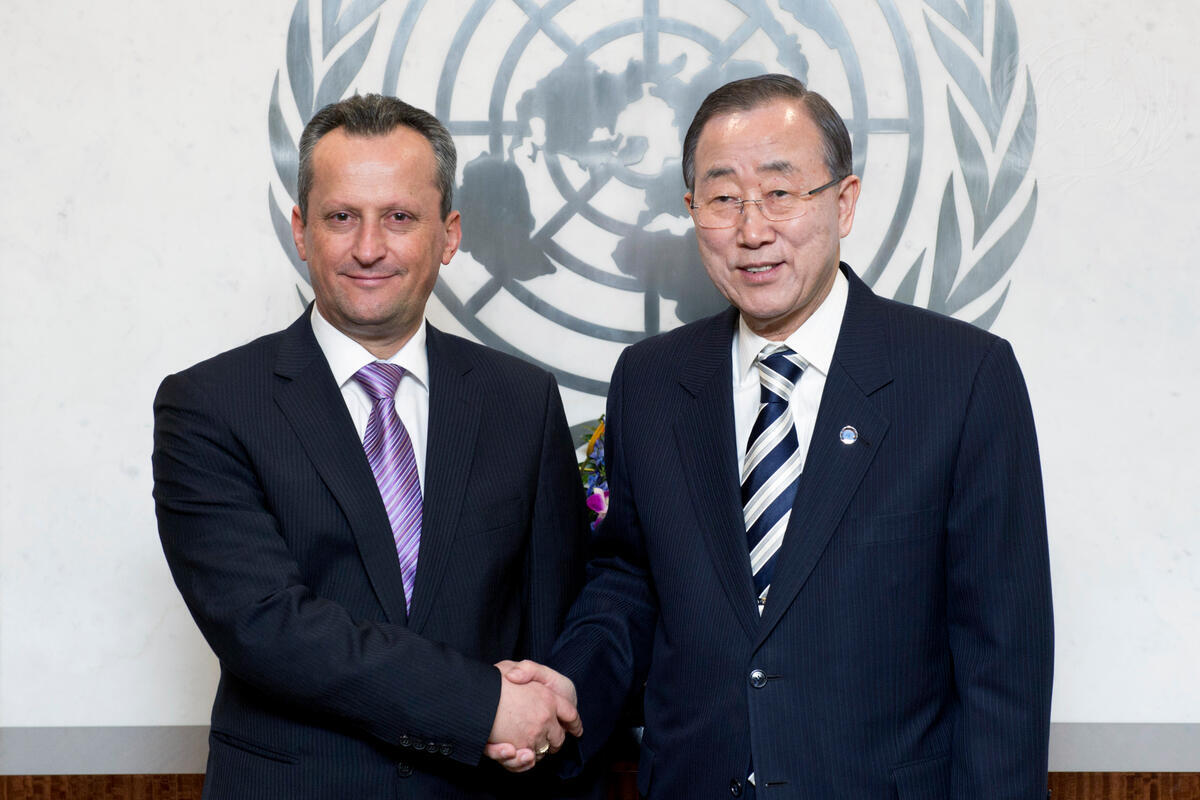 Secretary-General Ban Ki-moon (right) meets with Trajko Veljanoski, President of the Assembly of the former Yugoslav Republic of Macedonia.