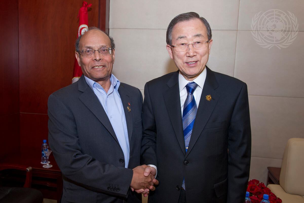 Secretary-General Ban Ki-moon (right) meets with Mohamed Moncef Marzouki, President of the Republic of Tunisia.