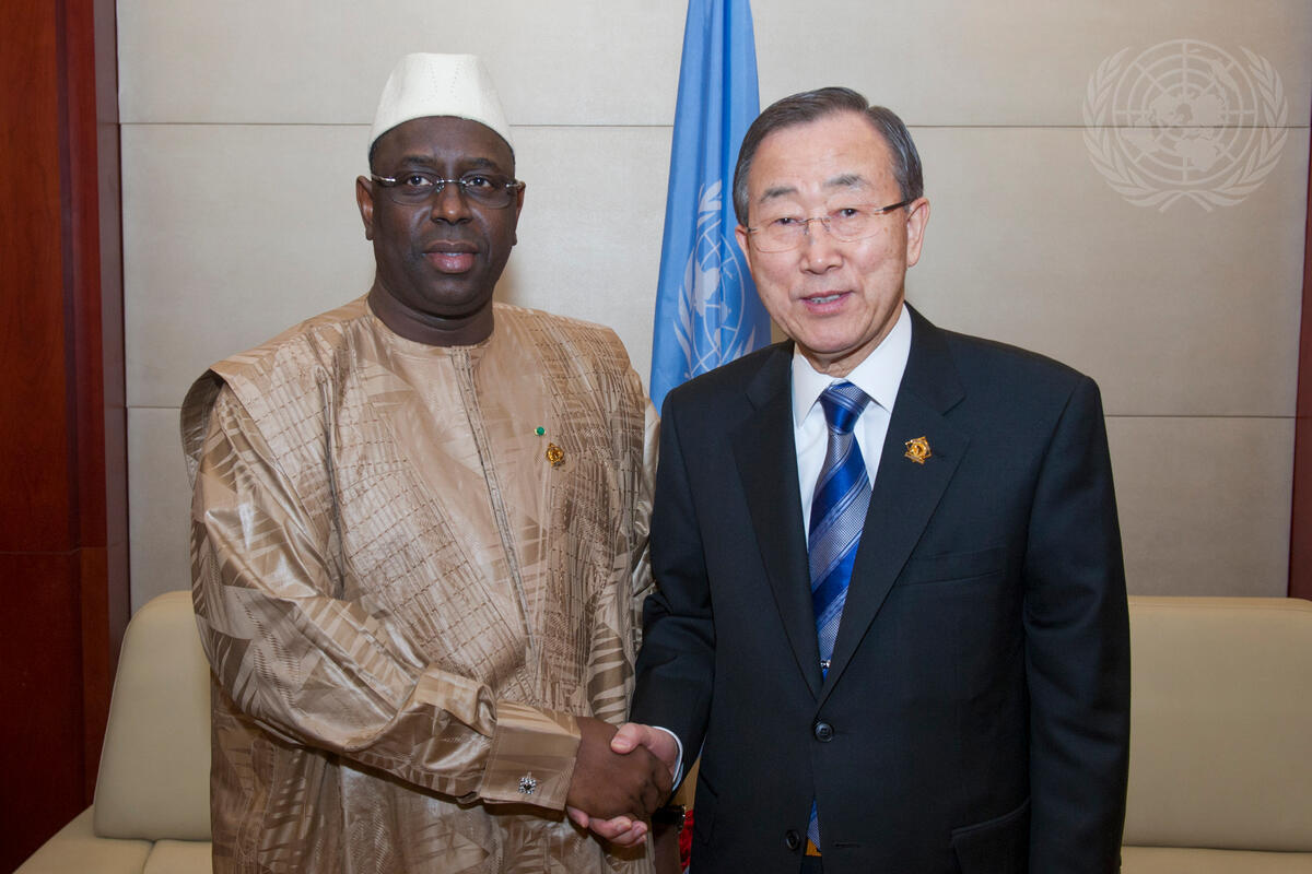 Secretary-General Ban Ki-moon (right) meets with Macky Sall, President of the Republic of Senegal.