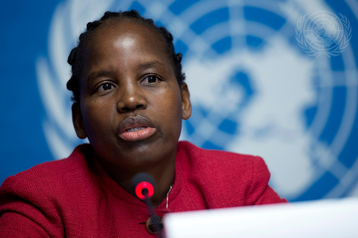 Unity Dow, member the Fact-Finding Mission, addresses a press conference on the Mission’s findings.