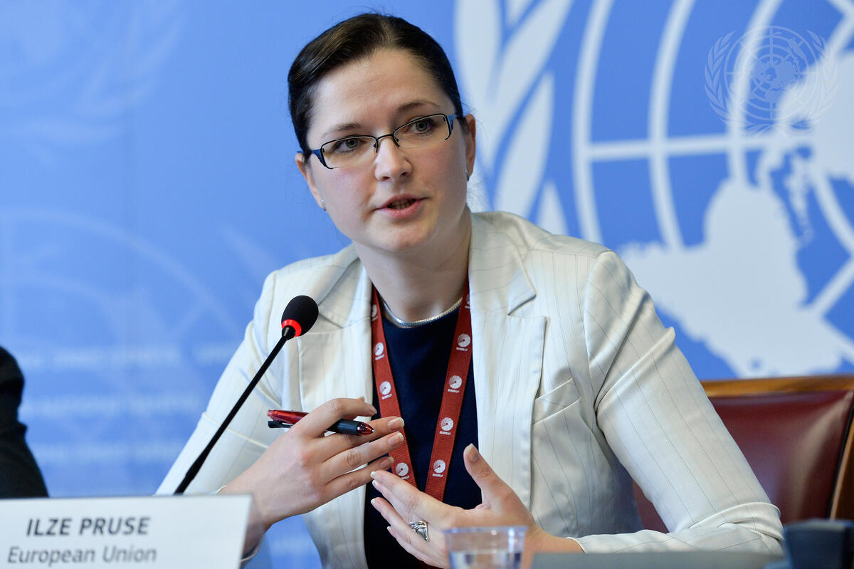 Ilze Pruse, Hed of the Latvian Delegation to the European Union, addresses a press conference on the opening of the ADP meeting.