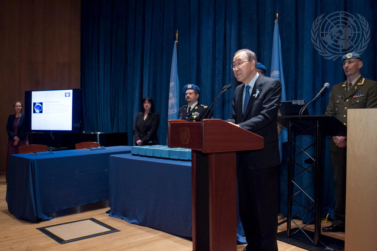 Secretary-General Ban Ki-moon (at lectern) speaks at the award ceremony.