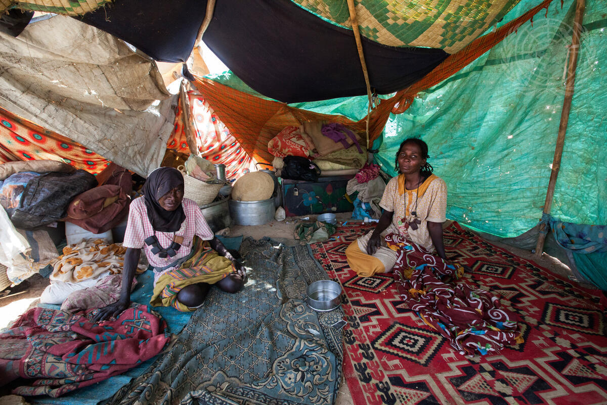 A displaced woman and her granddaughter are pictured in their temporary shelter near the UNAMID base in Saraf Omra, North Darfur.