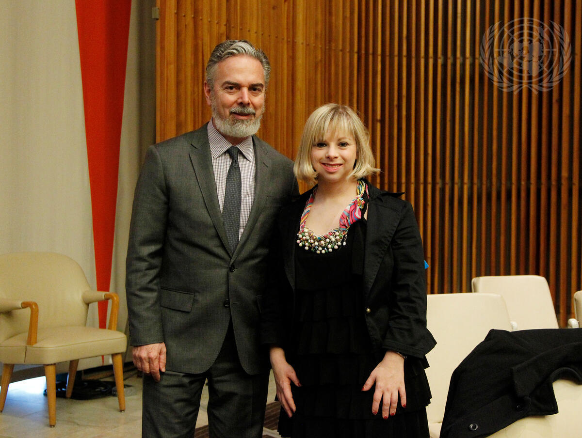 Antonio de Aguiar Patriota (left), Permanent Representative of Brazil to the UN, poses for a candid shot with a guest at today's special event.