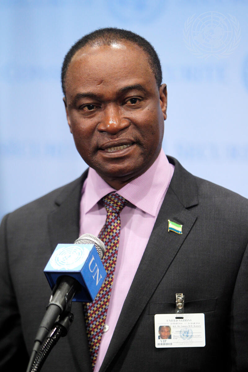 Samura M.W. Kamara, Minister for Foreign Affairs and International Cooperation of the Republic of Sierra Leone, briefs journalists following the Security Council meeting on the situation in his country.