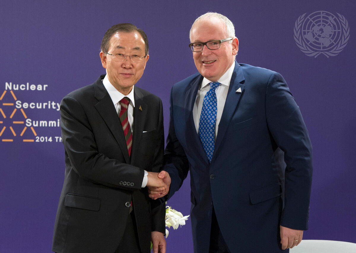 Secetary-General Ban Ki-moon (left) meets with Frans Timmermans, Minister for Foreign Affairs of the Kingdom of the Netherlands.