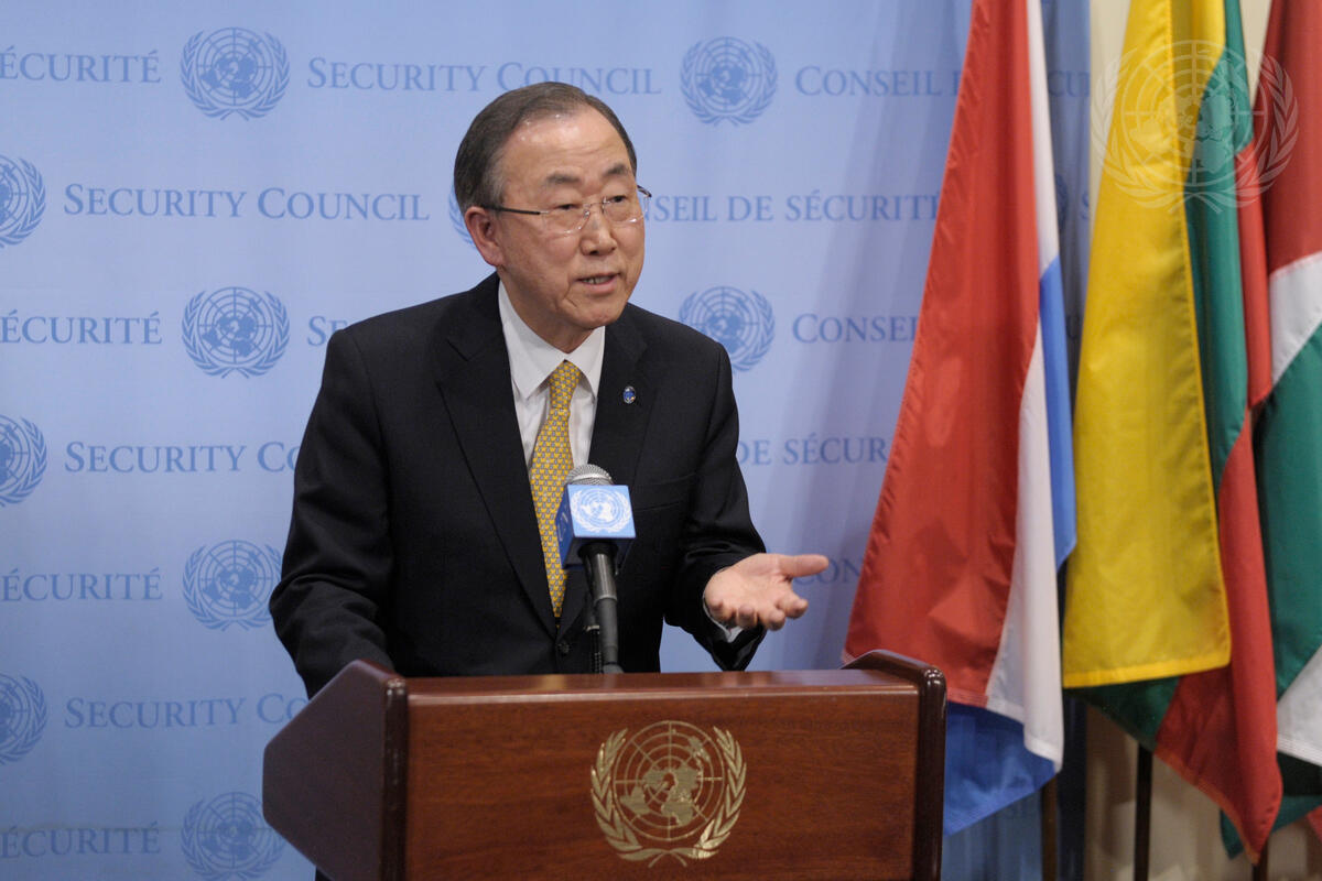 Secretary-Geenral Ban Ki-moon speaks to journalists following his closed-door briefing to the Security Council on the latest developments concerning Ukraine.