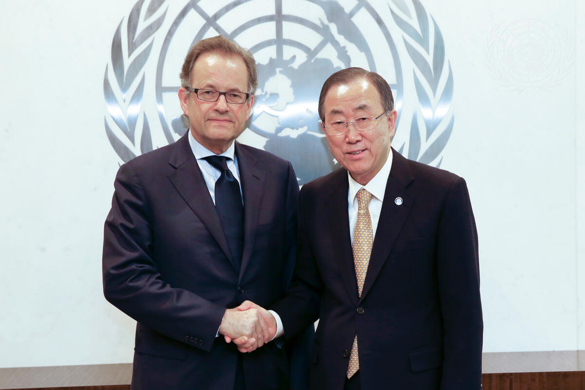 Secretary-General Ban Ki-moon (right) meets with Michael Møller, Acting Director-General of the UN Office at Geneva (UNOG).